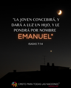 Esta señal dada al rey Acaz se cumplió de una manera mucho más llamativa y completa cuando nació el Emanuel del Nuevo Testamento. Ese Emanuel es Jesús. Él es «Dios está con nosotros.» Ese nombre, «Emanuel», es el nombre de Jesús. Pero Emanuel es un nombre muy usado. ¿Sería incorrecto usar ese nombre? No. Es incorrecto no saber que Immanuel significa «Dios está con nosotros.» Ese Emanuel de la época de Isaías señalaba a Jesús. Hoy, cada niño, joven y hombre llamado Emanuel ayuda a señalar al gran Emanuel, el Dios que vino a encontrarnos en Jesucristo, y continúa con nosotros hasta el fin de los tiempos.