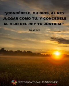 En la Biblia encontramos peticiones y gritos de justicia, como en el Salmo 72. El salmista llama a que la justicia prevalezca en el gobierno de Israel: 芦隆Conc茅dele, oh Dios, al rey juzgar como t煤, y conc茅dele al hijo del rey tu justicia!禄 (Salmo 72:1). En esta oraci贸n, el salmista intercede para que la justicia prevalezca sobre todos los aspectos de la acci贸n del rey y no pide solo su tiempo, ni un gobierno espec铆fico, sino todas las generaciones. En otras palabras, el Salmo 72 es un grito para que se haga justicia a todas las naciones y en todo momento.