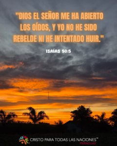 Lectura: «Dios el Señor me ha abierto los oídos, y yo no he sido rebelde ni he intentado huir.» (Isaías 50:5)